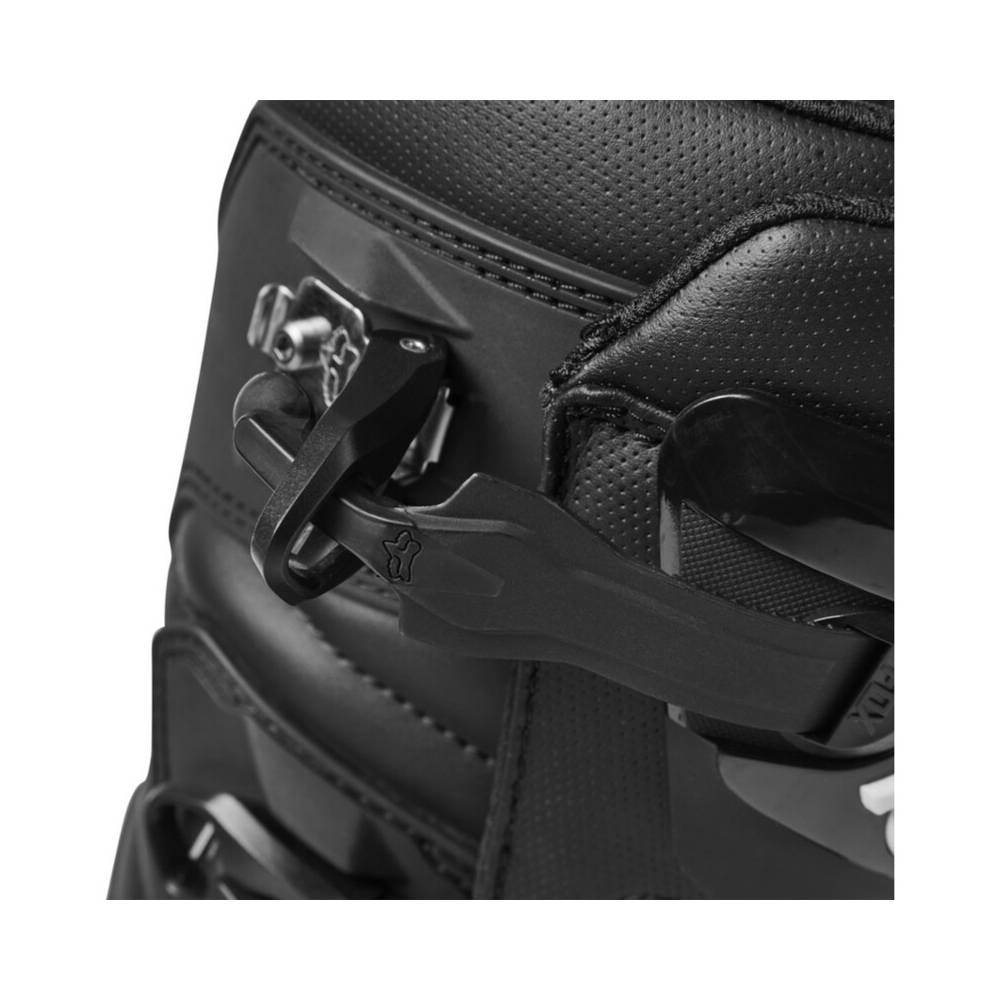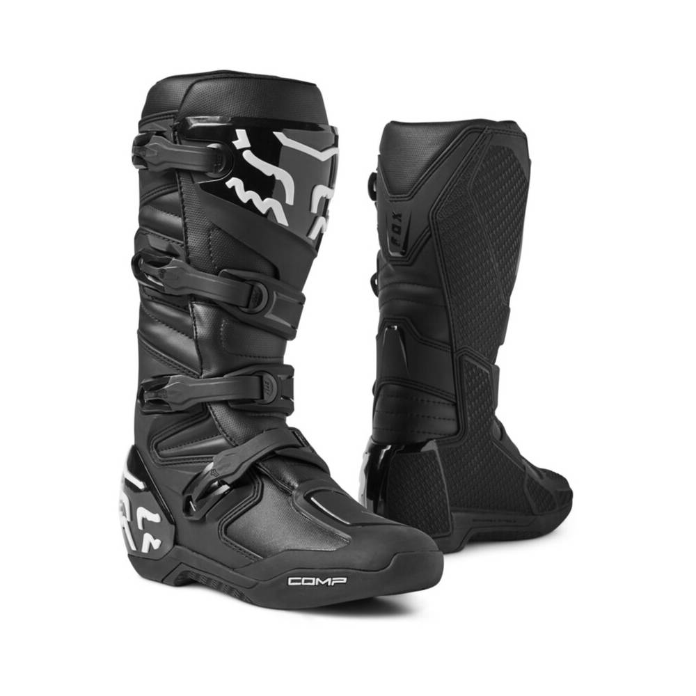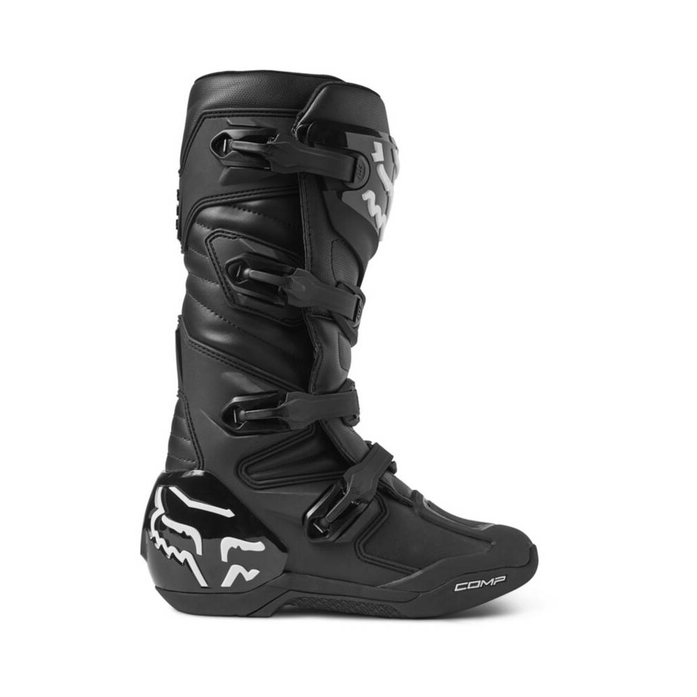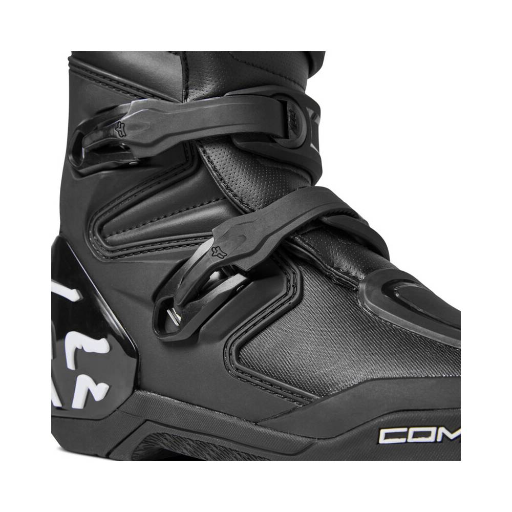 Offrant maintien et protection aussi bien en tout-terrain que sur circuit, ces bottes sont munies de plaques en TPU au niveau du tibia, de la cheville, des orteils, du talon et du mollet, ainsi que de propriétés anti-frottement pour vous fournir le niveau de protection que vous recherchez. Le nouveau système de fermeture réglable à quatre boucles procure un ajustement sécurisé et verrouillé, auquel vous pourrez vous fier. En prime, la semelle intérieure en composite assure sécurité et maintien des orteils au talon, et d'un côté à l'autre du repose-pied, tandis que notre composant en caoutchouc Fox PosiTac™ exclusif délivre une durablité accrue et une adhérence sans précédent sous la semelle extérieure. Mieux encore, la semelle des Comp peut être changée, afin de prolonger la durée de vie de ces bottes de motocross ultra-performantes.