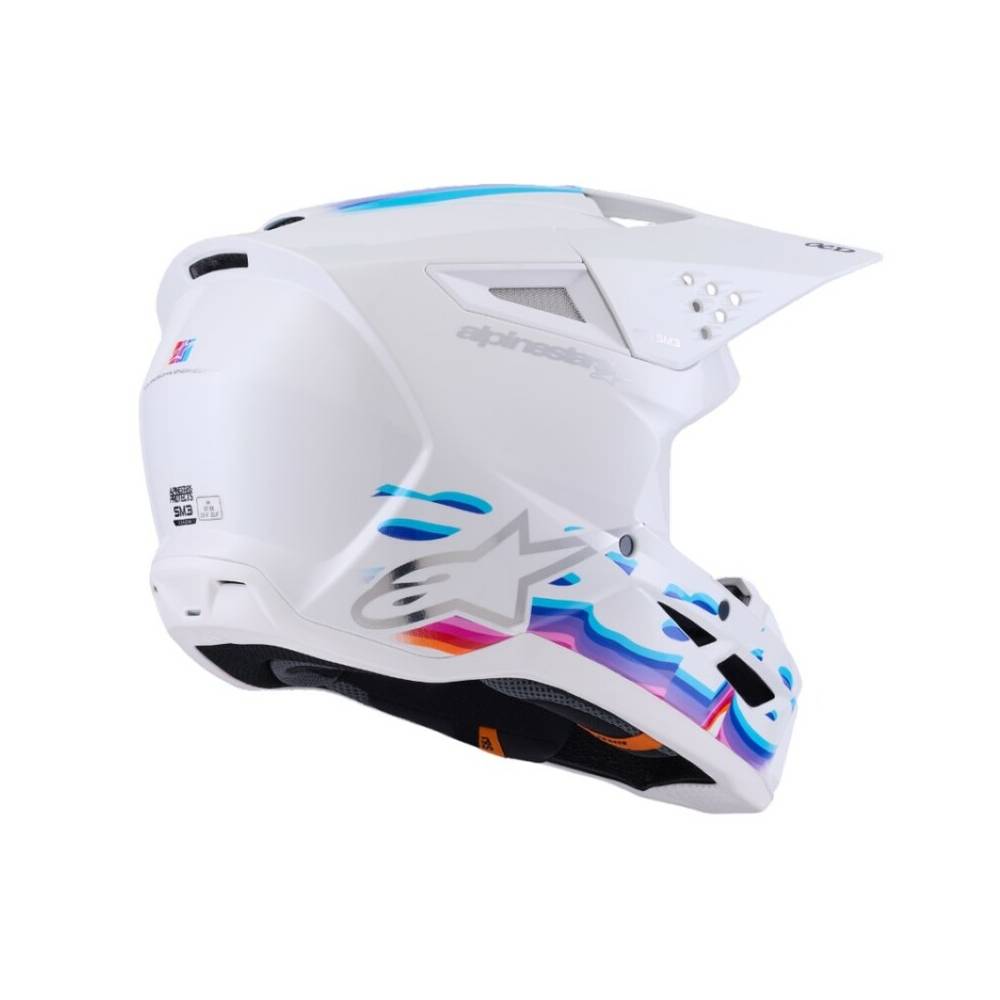 - Alpinestars a introduit une nouvelle norme interne pour le casque SM3 afin de tester la mentonnière du casque dans des conditions plus exigeantes que la norme d'homologation, et pour répondre aux nouvelles normes d'Alpinestars, tant l'épaisseur de la coque que la structure du design du casque ont été optimisées dans la zone de la mentonnière pour une performance supérieure face aux impacts.