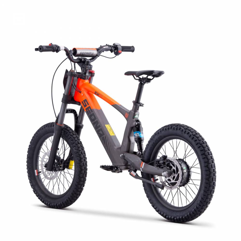 Équipée de freins à disque hydrauliques à l'avant et à l'arrière, la Sedna SX 18 assure un touché de levier précis et sécurisé, offrant aux jeunes pilotes une confiance totale à chaque mouvement.