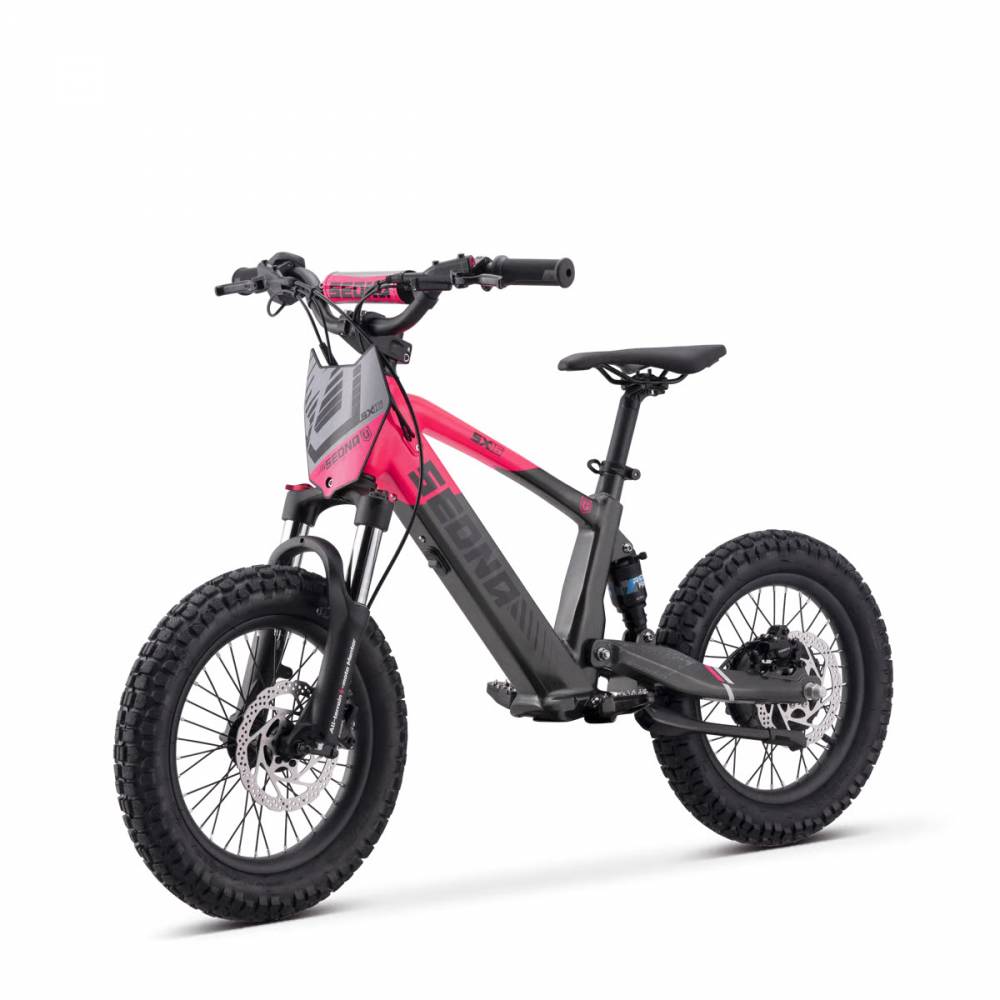 Équipée de freins à disque hydrauliques à l'avant et à l'arrière, la Sedna SX 16 assure un touché de levier précis et sécurisé, offrant aux jeunes pilotes une confiance totale à chaque mouvement.