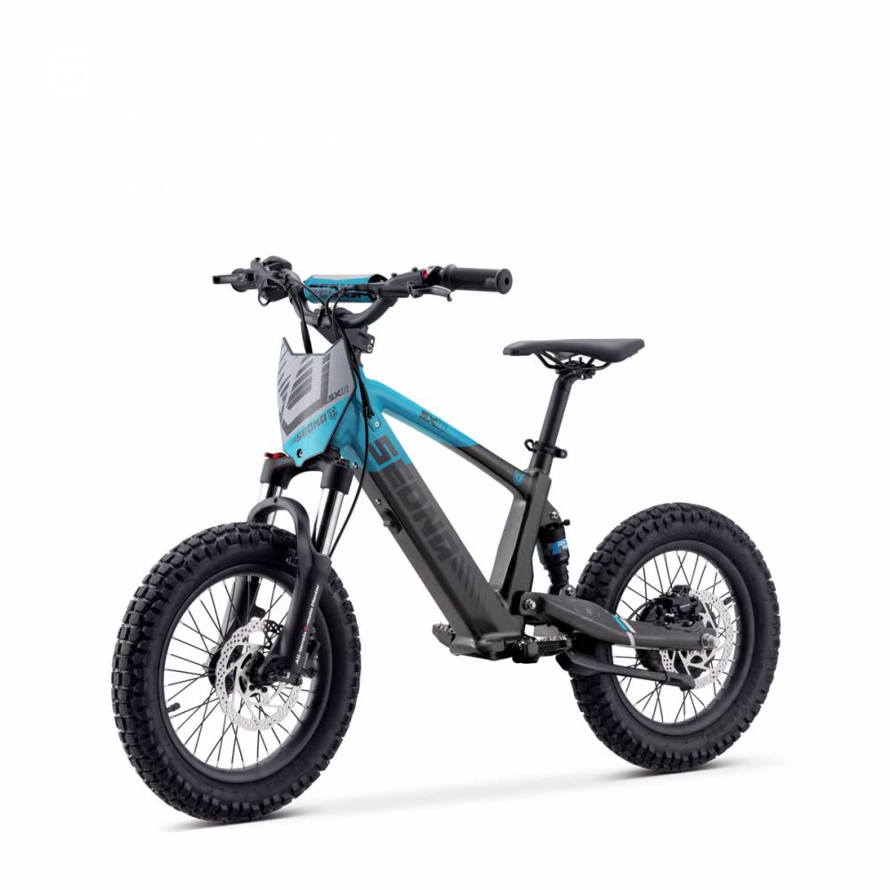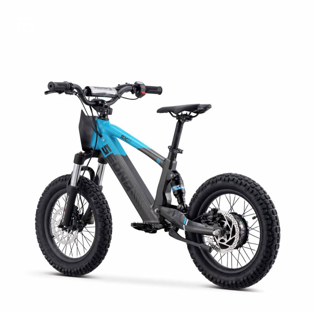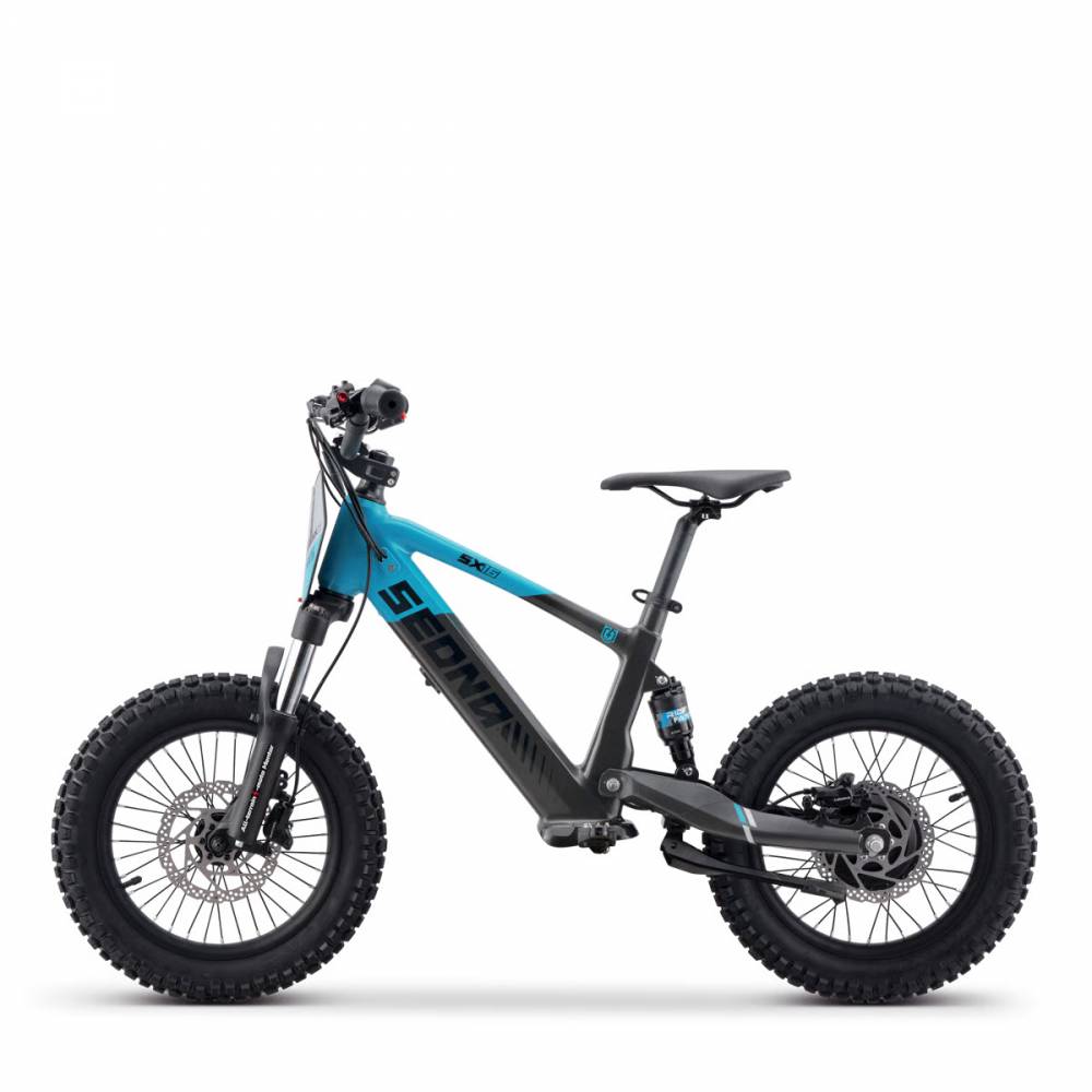 Équipée de freins à disque hydrauliques à l'avant et à l'arrière, la Sedna SX 16 assure un touché de levier précis et sécurisé, offrant aux jeunes pilotes une confiance totale à chaque mouvement.