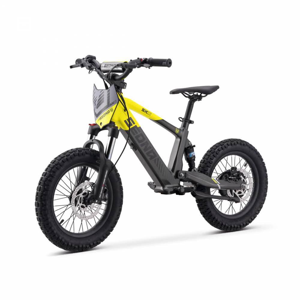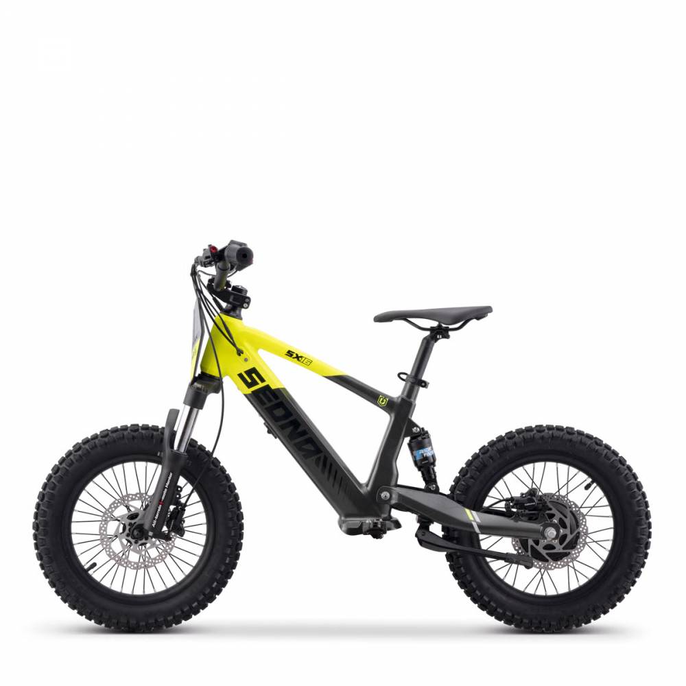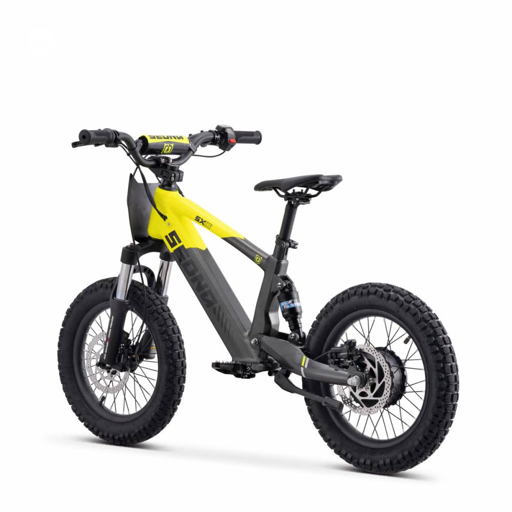 Équipée de freins à disque hydrauliques à l'avant et à l'arrière, la Sedna SX 16 assure un touché de levier précis et sécurisé, offrant aux jeunes pilotes une confiance totale à chaque mouvement.