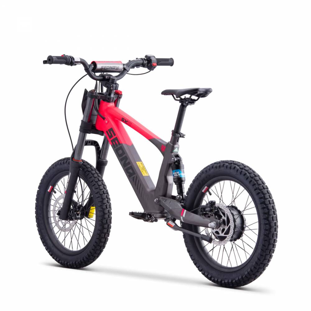 Équipée de freins à disque hydrauliques à l'avant et à l'arrière, la Sedna SX 18 assure un touché de levier précis et sécurisé, offrant aux jeunes pilotes une confiance totale à chaque mouvement.