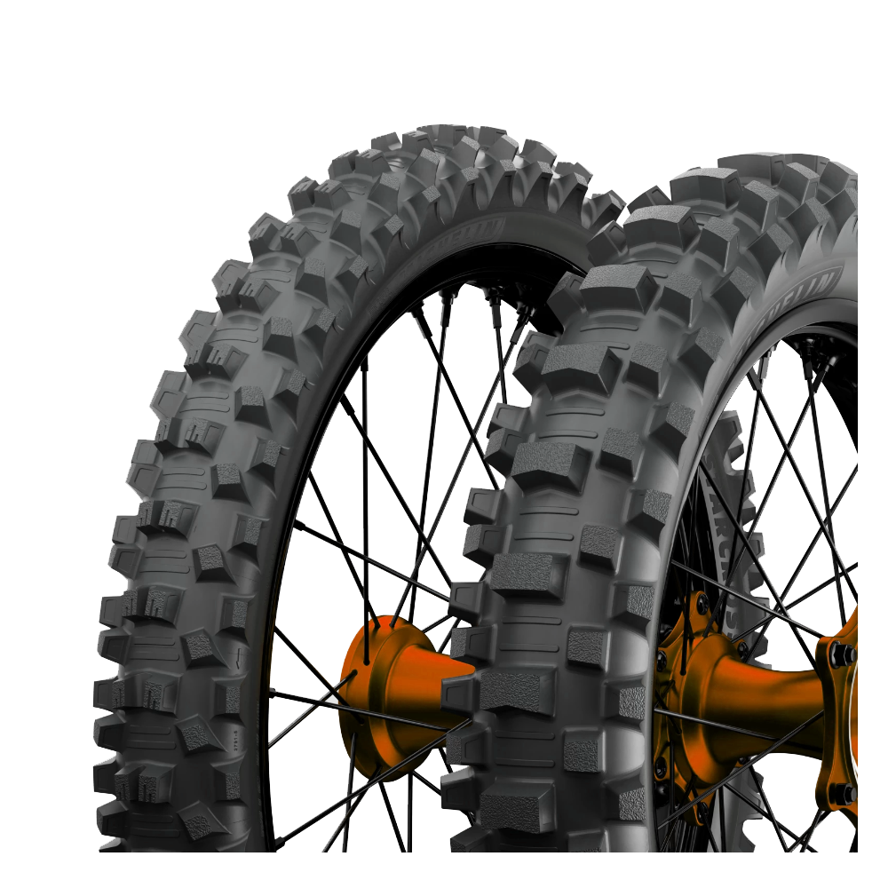 Les pneus AV et AR MICHELIN Starcross 6 Medium Hard sont réversibles pour une seconde vie, comme tous les pneu de la même gamme